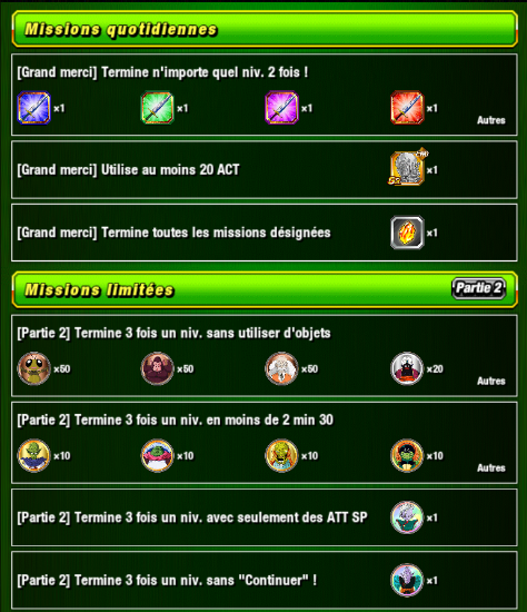 * Vous ne pouvez terminer chacune des missions limitées qu’une fois.