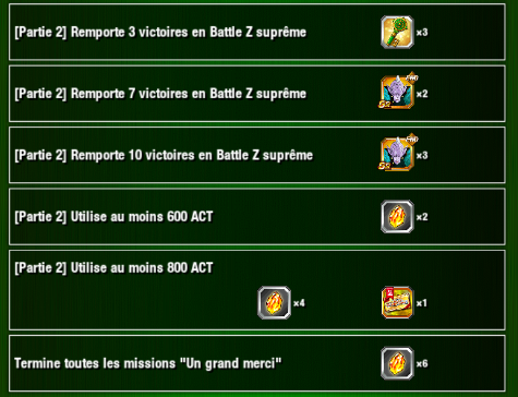 * Veuillez consulter la page des « Missions limitées » et des « Missions quotidiennes » pour obtenir plus d’informations sur les récompenses.