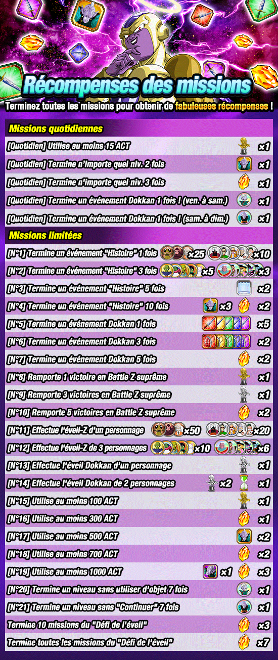* Veuillez consulter la page des « Missions limitées » pour obtenir plus d’informations sur les récompenses.