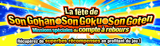 Venez vite tenter les différentes missions du compte à rebours pour la fête de Son Gohan, Son Goku et Son Goten !