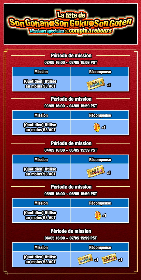 * Attention : les horaires des événements de Dokkan Battle sont indiqués à l’heure d’hiver (PST), et non d’été (PDT).