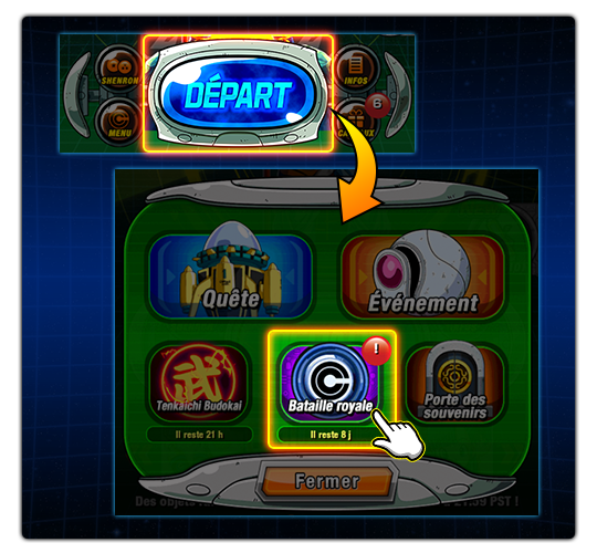 Appuyez sur l’icône « DÉPART » sur la page d’accueil et l’icône de la bataille royale apparaîtra !