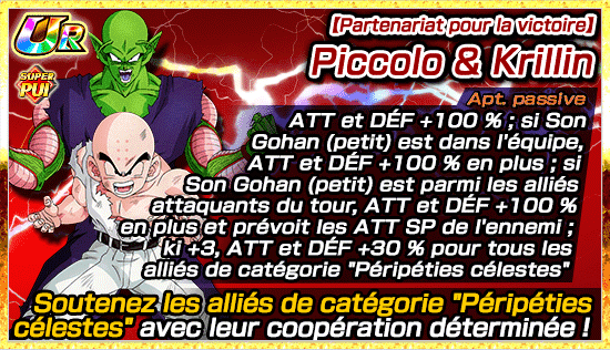 Le Piccolo qui peut être obtenu dans cet événement est de catégorie Péripéties célestes ! Incluez-le dans votre équipe pour augmenter vos chances d’obtenir des récompenses !