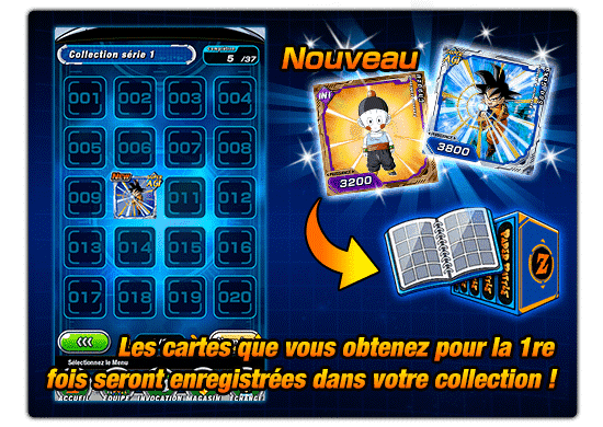 * Une fois obtenues, les Cartes resteront toujours visibles dans la Collection même si elles ont été utilisées.