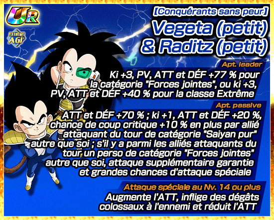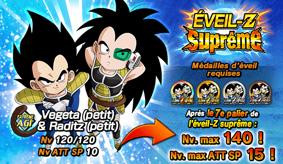 [Conquérants sans peur] Vegeta (petit) & Raditz (petit) peut lui aussi utiliser l’éveil-Z suprême grâce aux médailles d’éveil obtenues dans le niveau 2 !