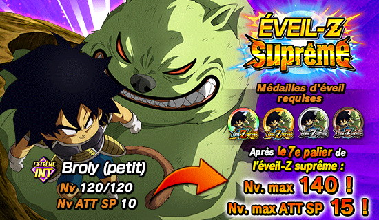 [Premier ami] Broly (petit) peut utiliser l’éveil-Z suprême grâce aux médailles d’éveil obtenues dans le niveau 1 !