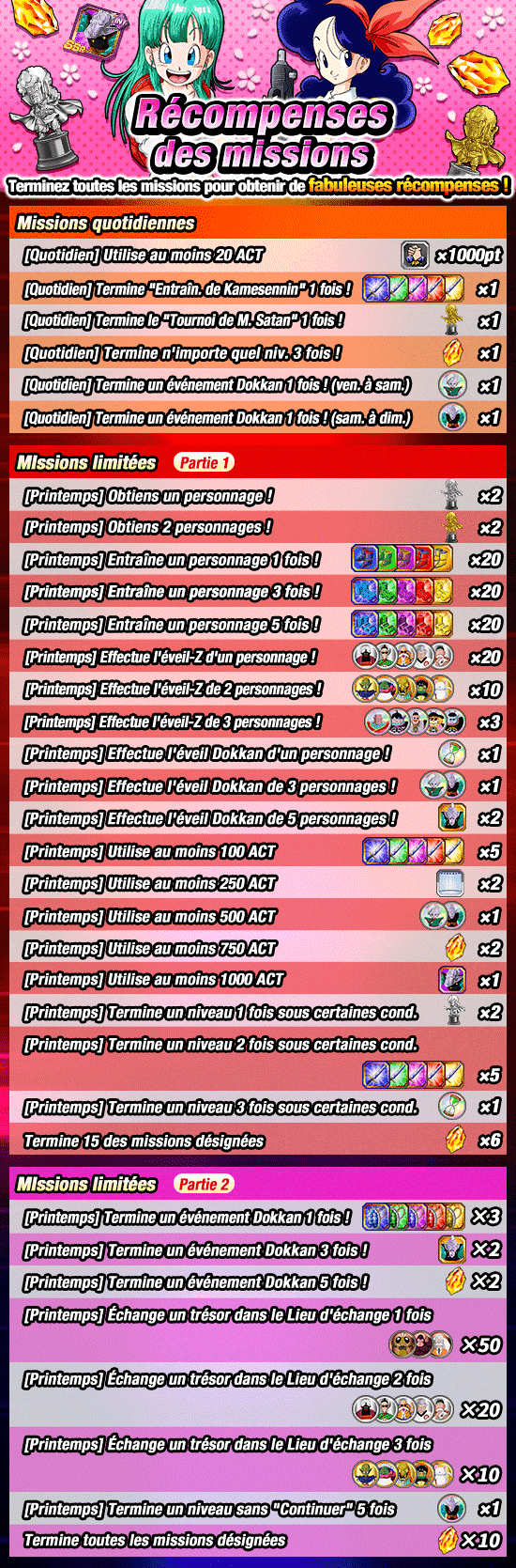 * Veuillez récupérer les récompenses des missions limitées avant le 20/03 (mer.) à 15:59 PST.