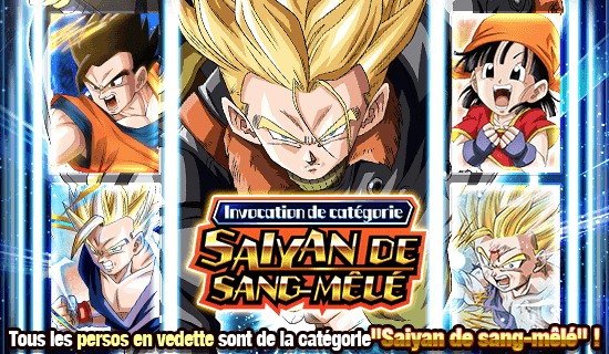 Les puissants personnages de la catégorie « Saiyan de sang-mêlé » se rassemblent ! Tous les personnages en vedette de cette invocation font partie de la catégorie « Saiyan de sang-mêlé » !