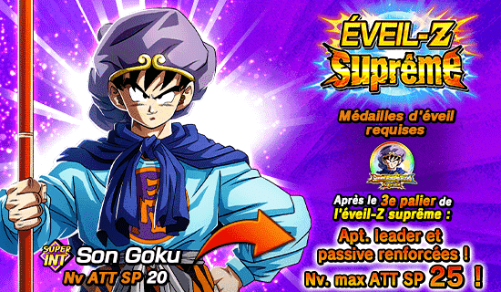 [Le plus courageux !] Son Goku et [Grand héros] Son Gohan (petit) peuvent procéder aux 3 paliers de l’éveil-Z suprême en utilisant les médailles d’éveil Son Goku (arc-en-ciel) et Son Gohan (petit) (arc-en-ciel) obtenues via les missions limitées de cet événement !