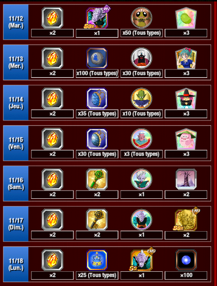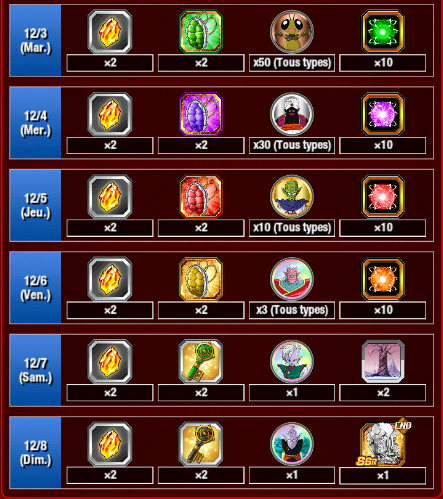 * Attention : les horaires des événements de Dokkan Battle sont indiqués à l’heure d’hiver (PST), et non d’été (PDT).