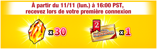 À partir du 11/11 (lun.) à 16:00 PST, vous pourrez obtenir 30 Pierres Dragon et une « Carte cadeau Dokkan « Un grand merci » 2″ lors de votre première connexion !
