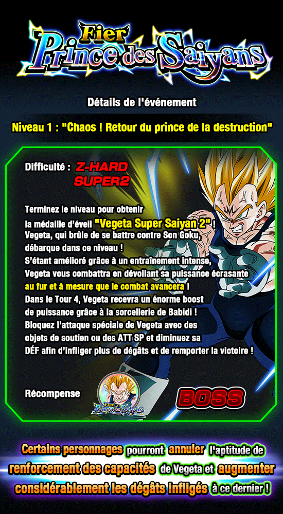 Vegeta apparaissant dans cet événement possède une aptitude de réduction des dégâts encaissés active à tous les Tours !